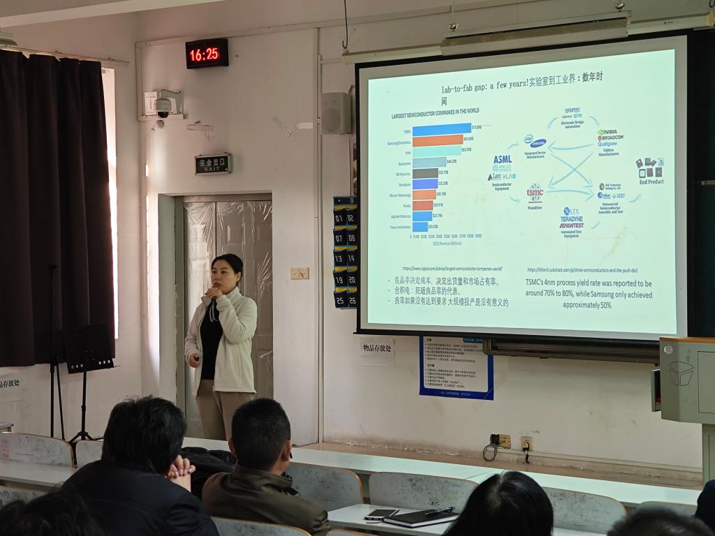 11月13日下午,化工与药学院邀请瑞典obducal纳米科技公司研发工程师刘艺博士作“纳米材料在半导体器件中的应用及纳米压印技术简介”的学术讲座。化工与药学院近300名师生参与聆听。