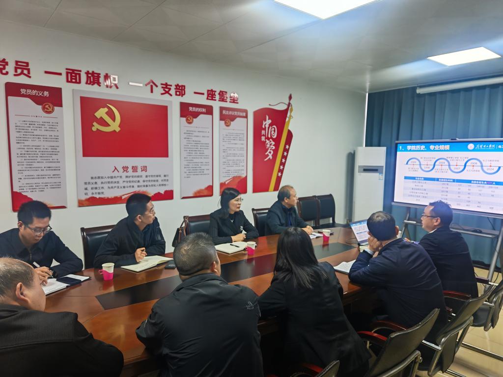 9月23日,学校党委常委、副校长谭新玉带队太阳成tyc7111cc集团调研。科技处处长田学军、学校办公室副主任王涛、学科建设办公室、研究生工作处副处长易庆平陪同调研。学院领导班子成员、各科室负责人参加座谈,会议由学院党委书记李立威主持。