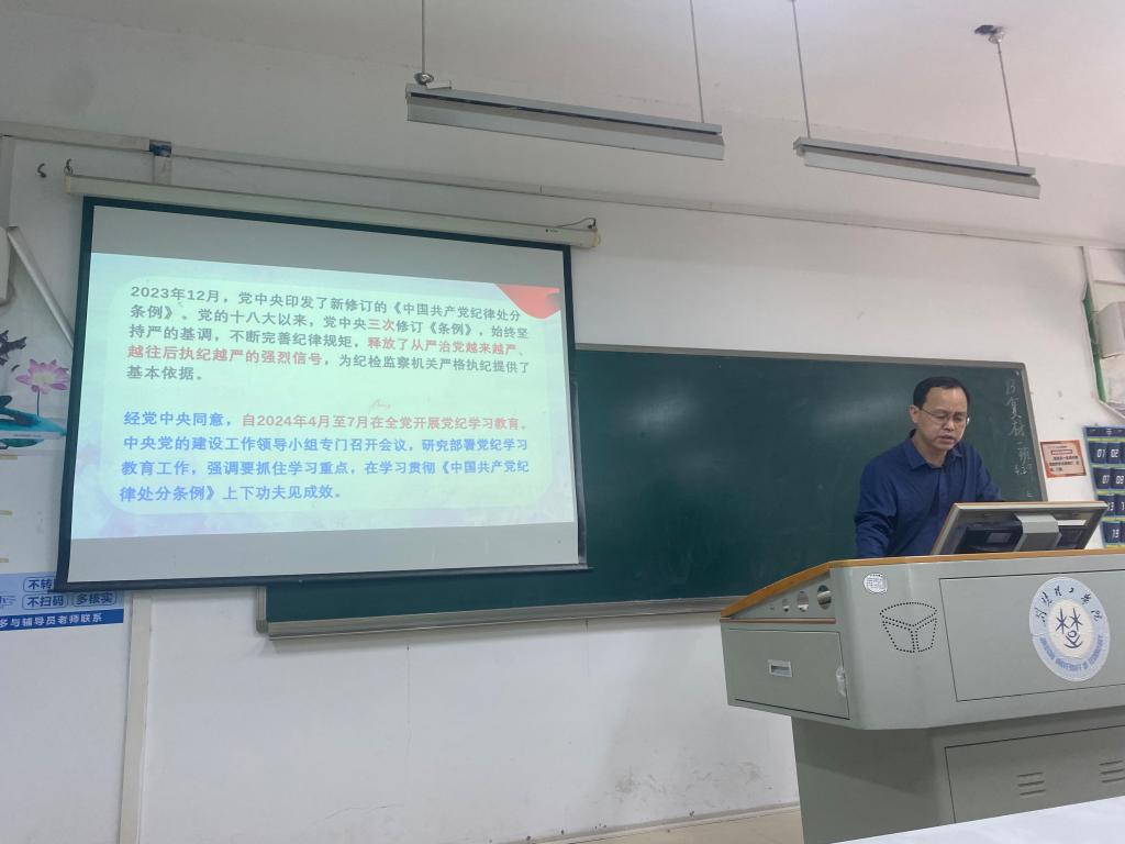 4月29日,化工与药学院党总支书记李立威,在B2-201为全院教师上廉政党课,带领大家学习《中国共产党纪律处分条例》(以下简称《条例》)。