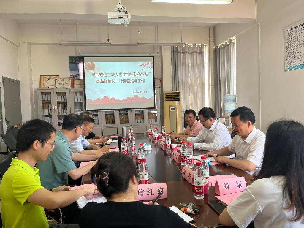 6月13日下午,三峡大学生物与制药学院院长周海峰一行考察我校湖北省重点实验室。学校科技处、化工与药学院、药物合成与优化湖北省重点实验室相关负责人参加此次活动。