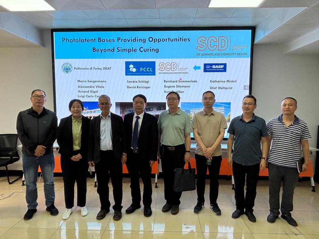 Dietliker教授首先报告了光聚合反应的机理及其在刻胶、印刷油墨、粘合剂、3D打印领域的应用进展情况,重点介绍了其团队研发的几种新型光产碱剂的设计思路、合成方法,以及其在汽车涂料、有机-无机杂化涂层制备氧化石墨烯还原等领域的应用实例。