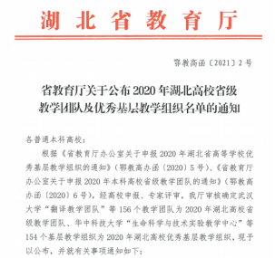 据《省教育厅关于公布2020年湖北高校省级教学团队及优秀基层教学组织名单的通知》(鄂高教函〔2021〕2号),经高校申报、专技评审等程序,湖北省教育厅审核确定了2020年湖北高校省级教学团队和优秀基层教学组织名单,其中化工与药学院基础化学教学团队榜上有名。